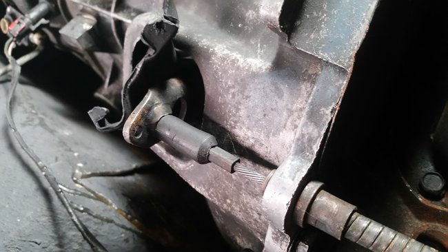 a. Install clutch cable through hole in clutch fork and seat, then install return spring.
