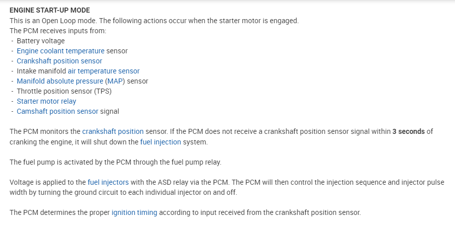 For most cases the Crankshaft position sensor is the cause of this. However, there are many things that cause this so we need to do some testing to be sure. I attached the detail on this but we should check to see if you have spark. If you have spark then the CKP sensor could be the issue. If there is no spark then we need to look at the ignition system.
