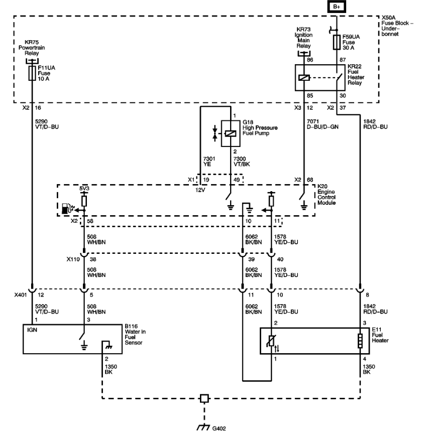 A restricted fuel supply line, a leakage in the high-pressure section, too much or too little fuel in the low-pressure line may cause DTCs to set. When ambient temperatures are below 0°C (32°F), the fuel tank pickup screen may be iced over from water in the fuel tank.