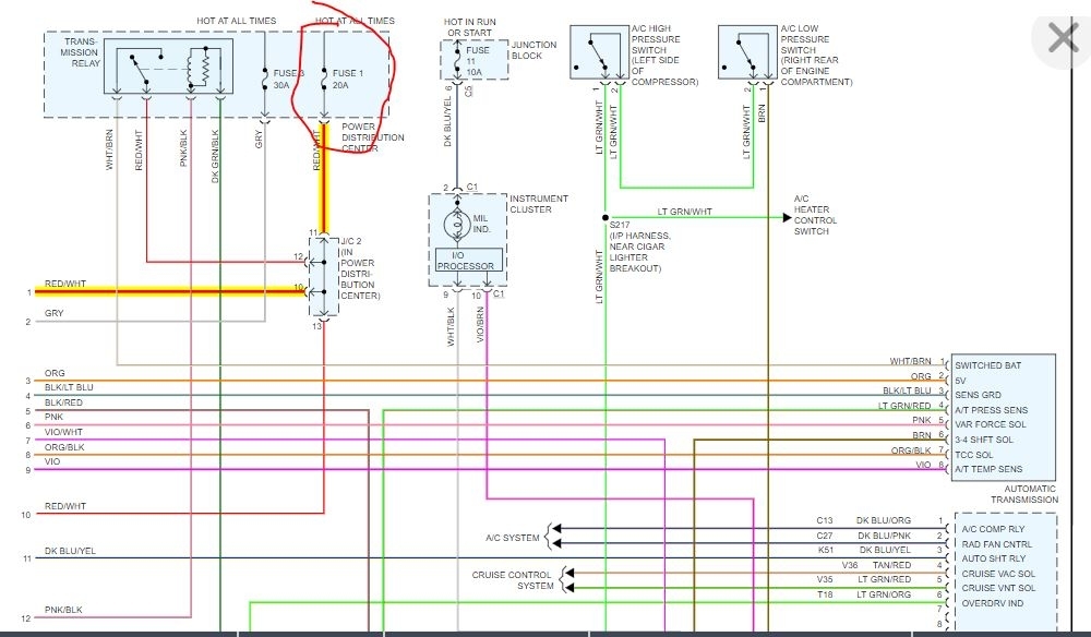 WARNING: The fuel system is under a constant pressure (even with engine off). Before draining fuel tank, fuel system pressure must be released.