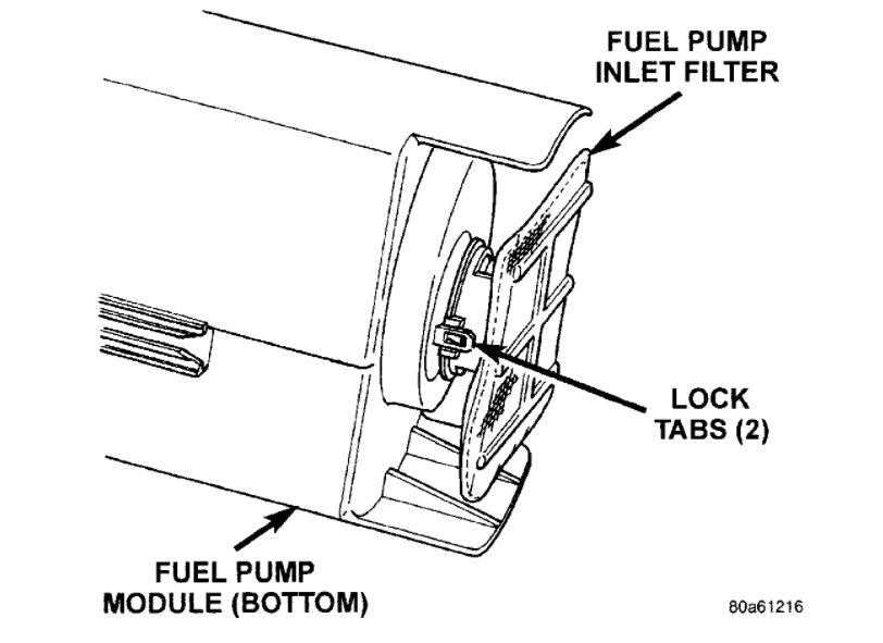 NOTE: The fuel pump inlet filter (strainer) is located on the bottom of the fuel pump module (Fig. 30). The fuel pump module is located inside of fuel tank.