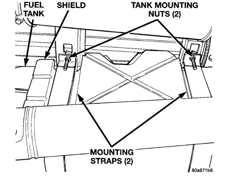 Position tank mounting straps to side of vehicle and lower tank just enough to allow access to connections at top of tank.