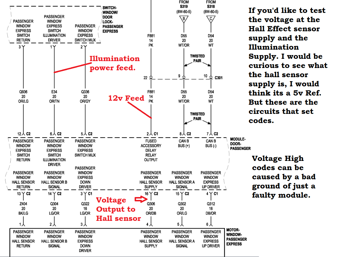 Can you view any live data from the window modules, these modules have hall effect sensors in them to detect position, there is a TSB on the modules, but take a look at the 2nd and 3rd diagrams in my last post, see if you can clear the window memory and do the relearn procedure. I'll post the TSB if needed
