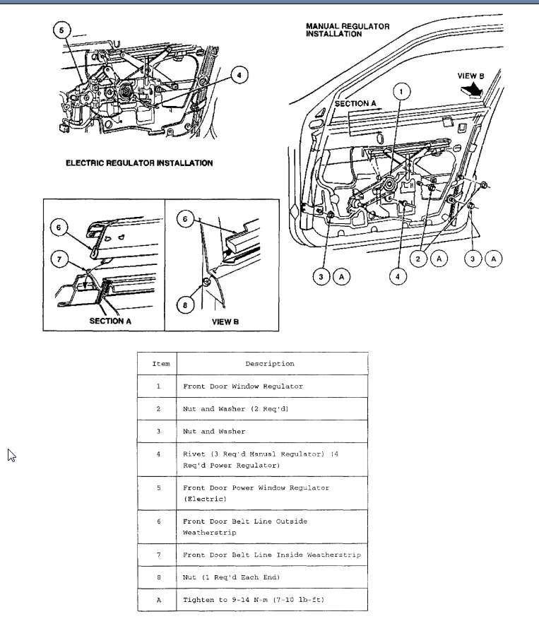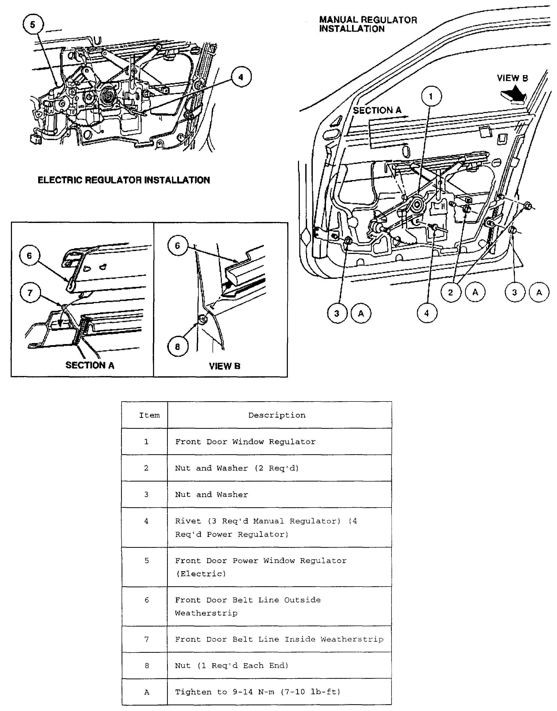 Vehicle Windows and Glass Windows Power Window Motor Service and Repair Procedures Window Regulator Front Door Window Regulator