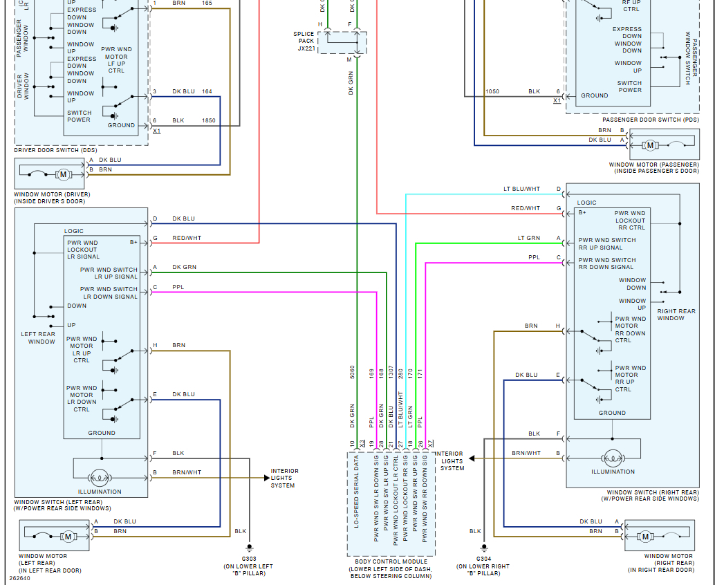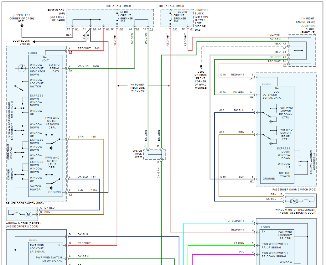 My back right power window was only going down at the door but not back up and I could only roll it up at the master but not down. So, I replaced the switch. Now it will work at the door up and down and not all at the master switch. Can you give me the wiring diagram for these windows?