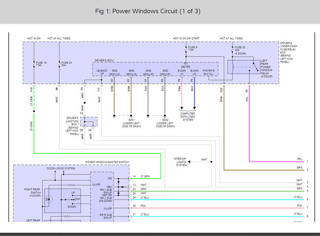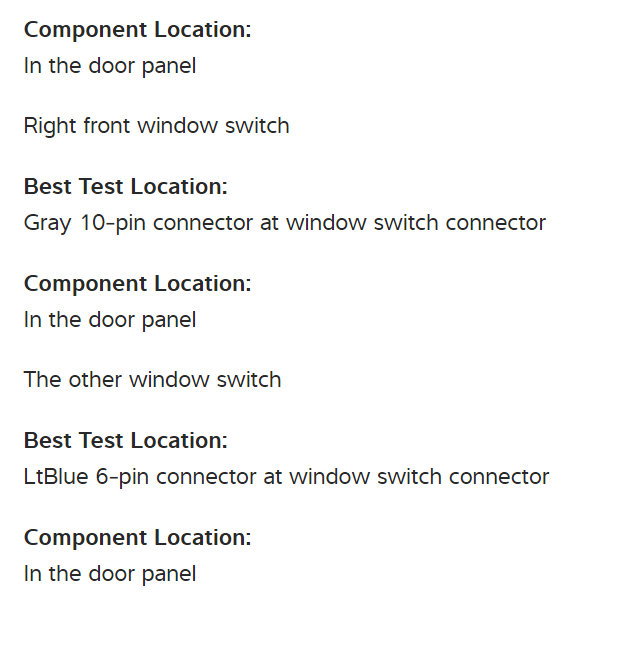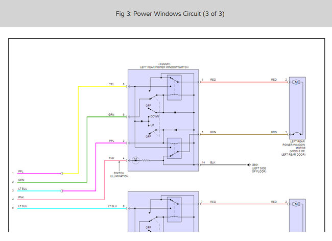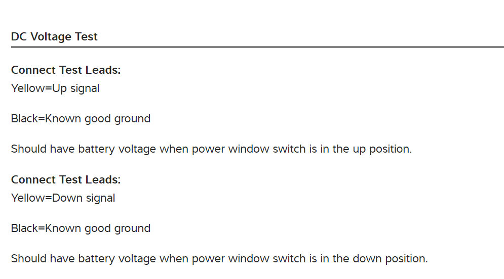 I also have included in the diagrams down below Wiring Diagrams for the power windows. Please do the tests in the diagrams below and get back to us with the results. We will go from there.