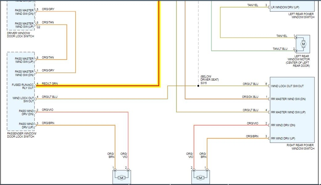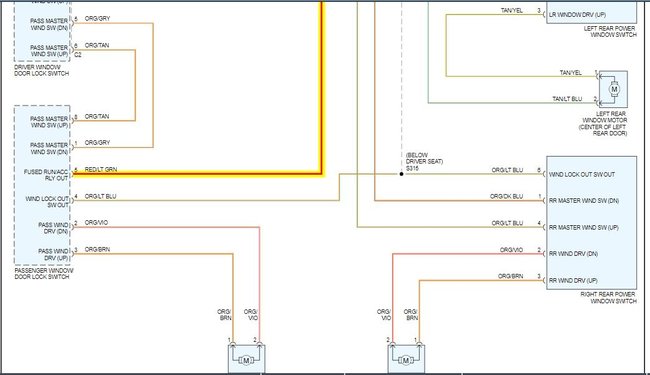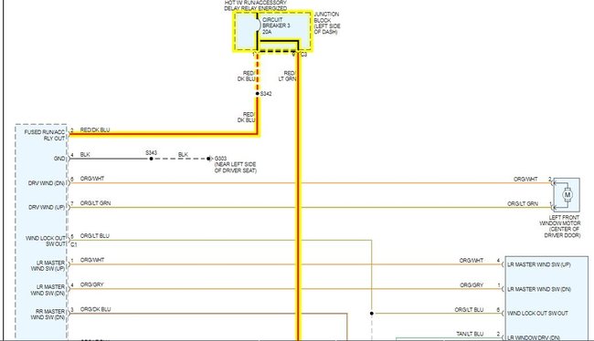 I attached a wiring diagram of the window circuit for you. We will need to do some testing to be sure you have power to the switches and the motor.