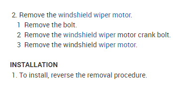Can you describe step by step how to, remove and replace a windshield wiper motor for the car listed above?