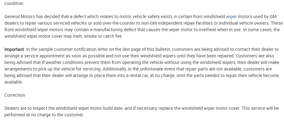What you described sounds like the switch itself is faulty. However, there was also a recall on the wiper motor itself for overheating issues that could have caused a fire. Something may be resulting from that issue.