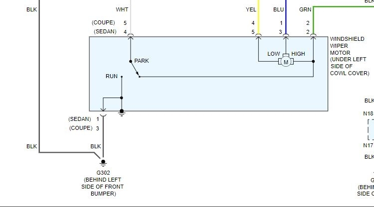 Next, if the power doesn't drop to the motor indicating a bad switch or connection, we need to check the ground. Check ground 302 (G302) as seen in pic 1 and make sure the motor itself has a good ground.