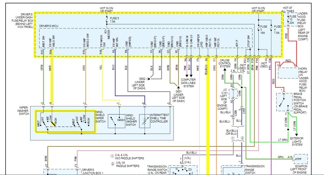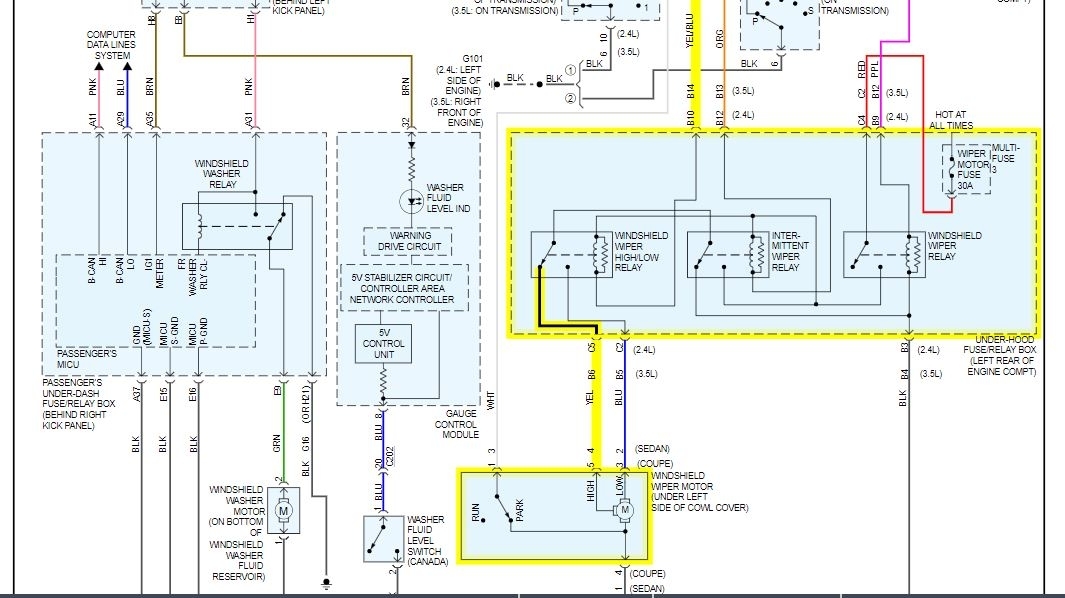 The first thing you need to do is to check the yellow wire going to the wiper motor for power when you command high speed operation. You will need a test light or volt meter to do this test.