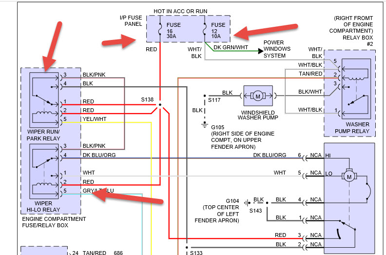 They will not work on intermittent or low. They work fine on high. Are there fuses and relays that would allow one speed to work and not all? If so, where are they? Do I need to take my turn signal, wiper lever apart?