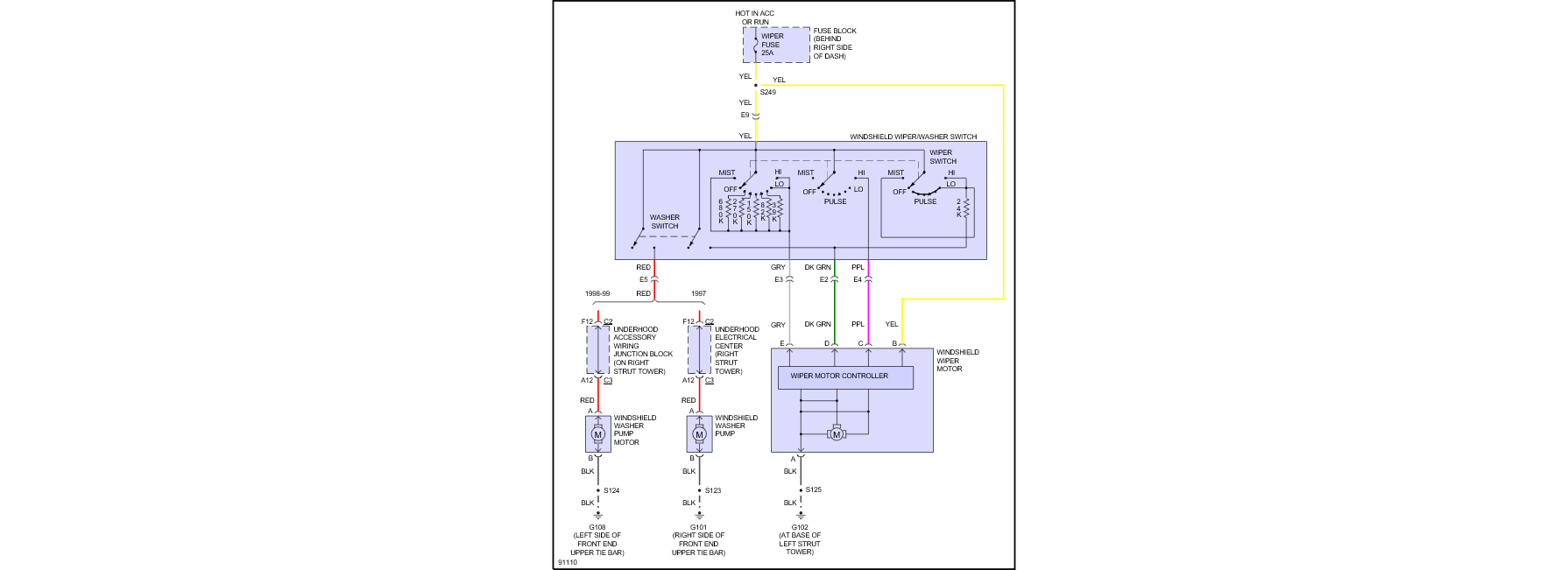 That wiper fuse is fed from the ignition switch and the ignition switch is fed from a IGN Main 1 maxi fuse in the underhood fuse center.