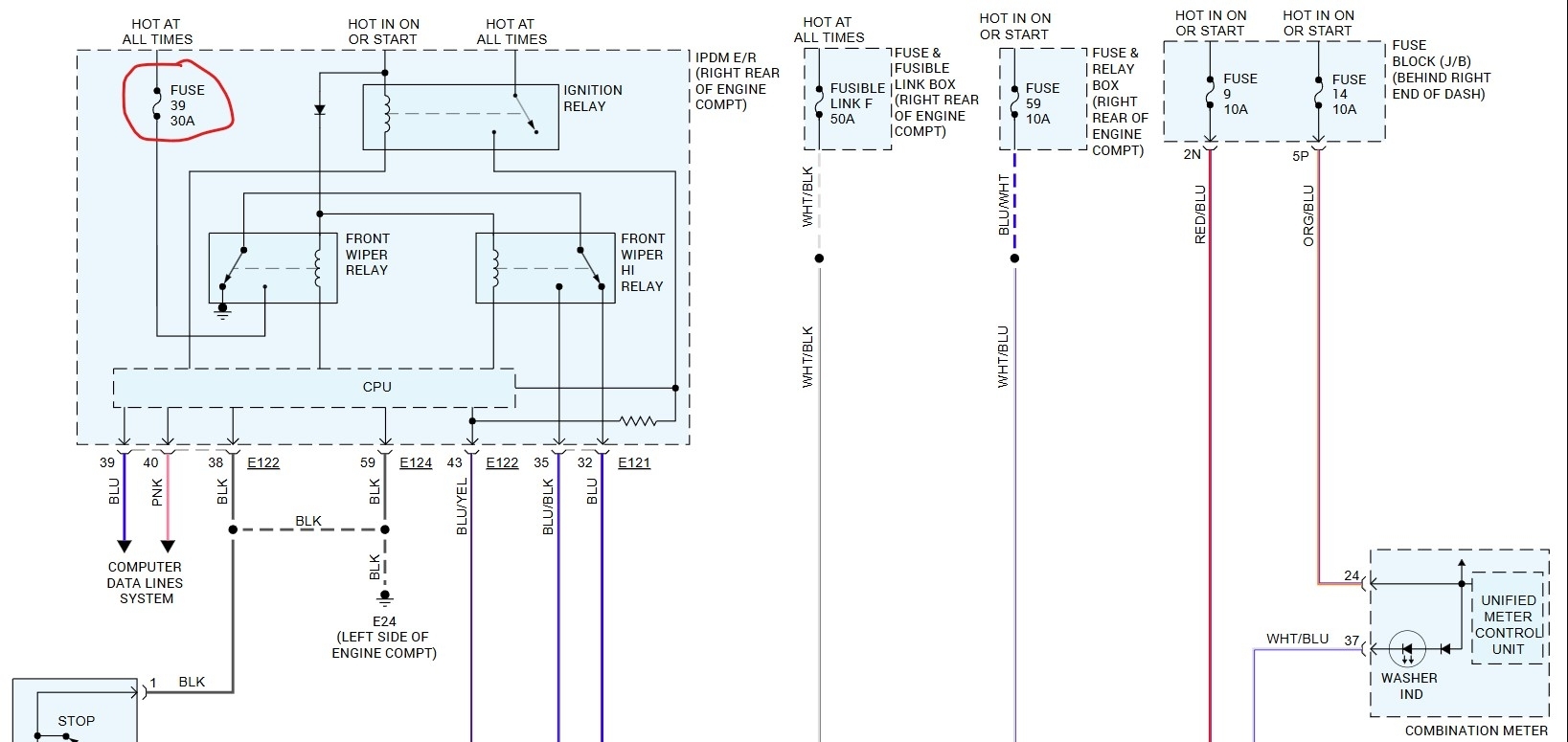 The test light is also handy to test the fuses. 39 for instance should have power full time, even with the key off.