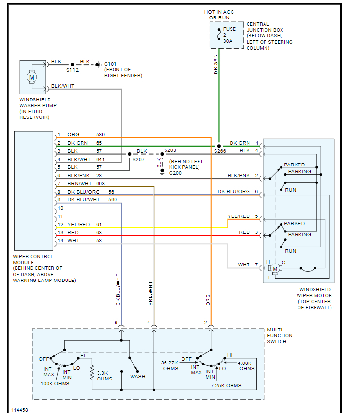 Page 501-16-23 of service manual. Component Test Windshield Wiper Motor.