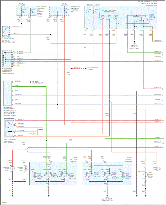 I'm attaching the lighting schematics which include the rear lights. I'm not sure what you are actually looking for. If you have a specific component, let me know what if it.