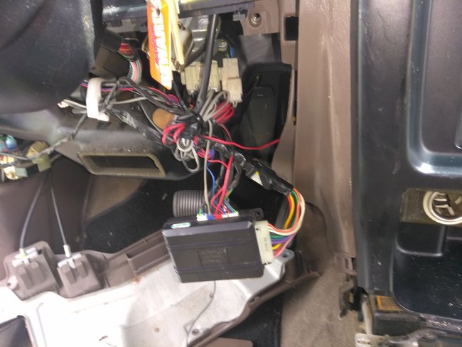 Looks like an aftermarket key-less entry/remote start/alarm. The plugs in the side are not OEM and it has that big wad of wire above it.