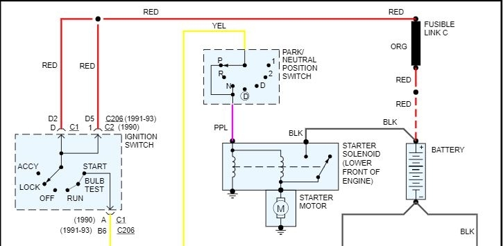 I attached the starting system schematic. I had to cut it in two to get the entire picture. However, I did overlap it so you can easily follow it.