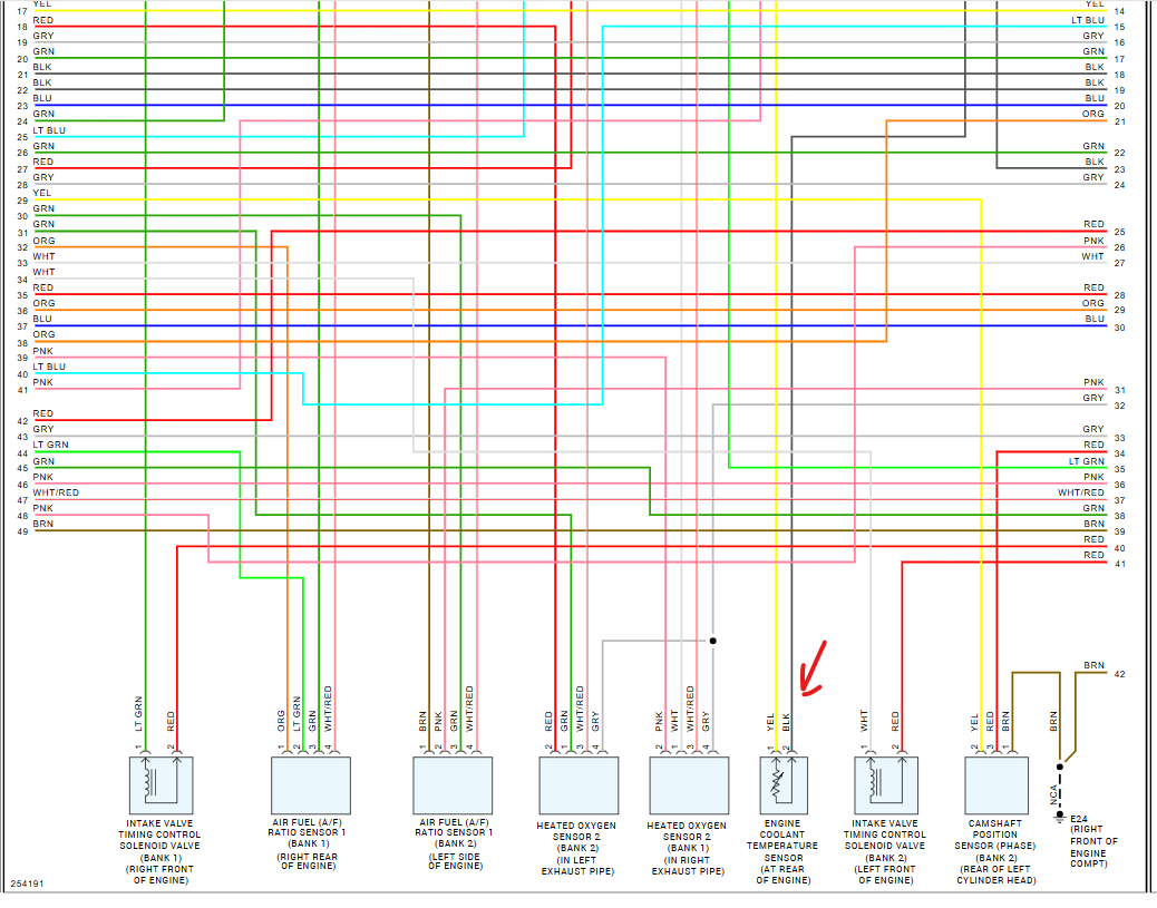 I broke the connector for the engine coolant temperature sensor. I was going to replace it so I had to cut the two wire one was black the other yellow. I know the yellow is like the power I guess, but when I got the other plug from the front fog lamp wiring that was never used. The wires were purple and light green. So, I hooked up the light green to yellow and purple to black and the gauge never reads over 140 on dash and scanner so I switch them and it read normal but kept going up down just a little thing is the gauge reads normal temperature like 200 when I haven’t even started car yet just with key on.