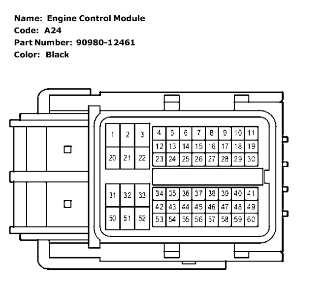 I need a wiring diagram for my 09 Camry le of the 60pin ECU receiver and it's functions due to the fact that after changing the wire harness the plug from harness to ECU wasn't a match. The120 pin plug matched but not the 60 pin.