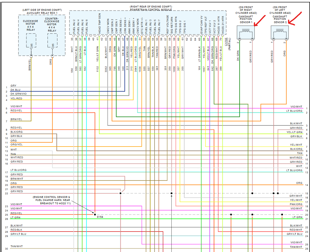 I have an engine code that shows the camshaft position sensors are not sending data. I have replaced both sensors several times now and replaced one of the pigtail connectors but the issue is still not resolved. I have been watching your youtube video to try and test the connectors to see if it is a wiring issue or bad connector or possibly, hopefully not, the pcm itself. My connectors to the pcm do not look the same as the one in the video and I am not sure how to figure out which pinhole the wires are connected to, to do the voltmeter check. Can you please send a wiring diagram? I checked the all data site and have to join their membership in order to access their information, which just costs more money I don't have right now. Any help would be appreciated. Thank You.