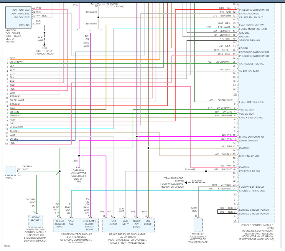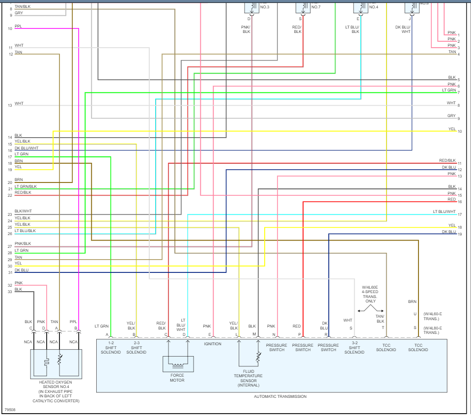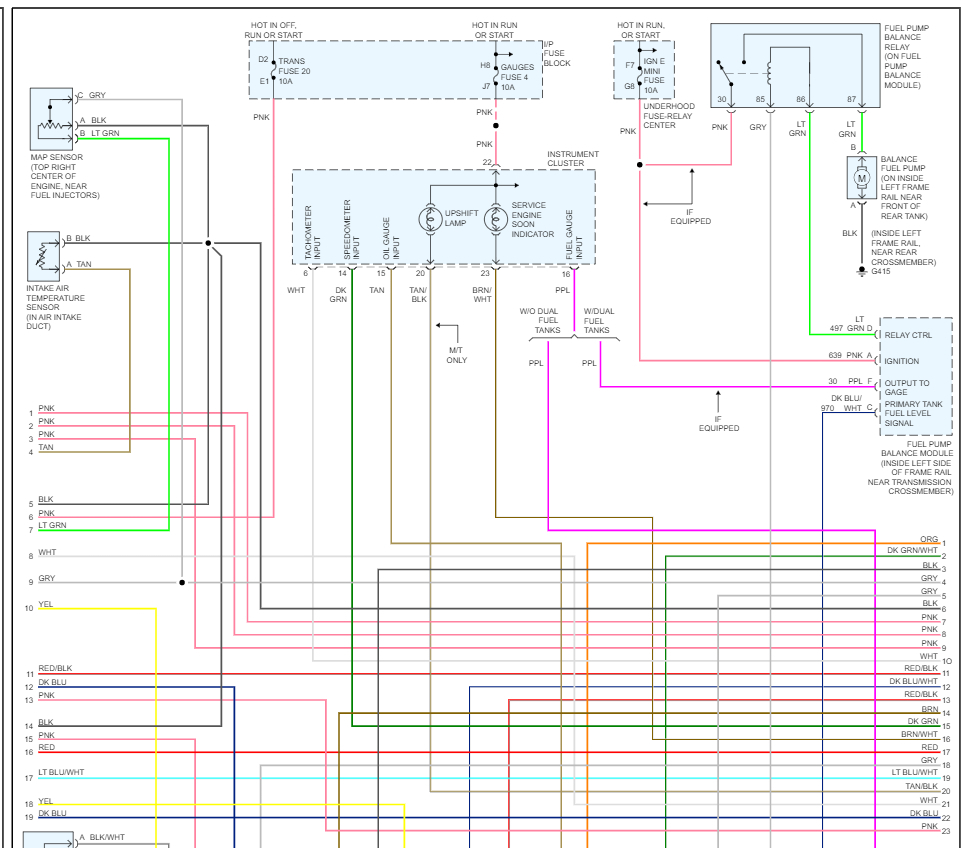 I highlighted each wire for you and showed just the part of the diagram where the wire begins and ends. In diagram # 89249 there are 3 wires one pink, one yellow, and one black with a white tracer. The pink wire goes directly to the 20-amp circuit circled in pink. It doesn't go anywhere between the sensor and that fuse. The spot in the circled area where there is a bunch of dots is the splice. It should be at or below the main under hood fuse panel. Probably a very thick harness. You will have to open the harness and see if there are any issues with that splice like corrosion or a broken wire.