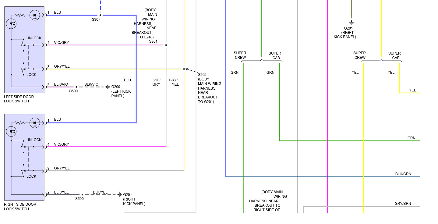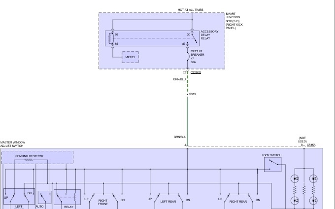 The diagram is for power windows. Check for voltage at circuit breaker. Also, check wiring on hinge side of driver door. The driver door is open and closed so much, sometimes the wires in the harness may break?