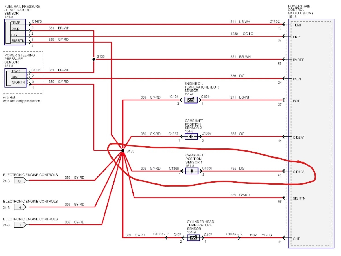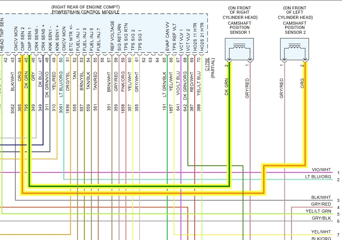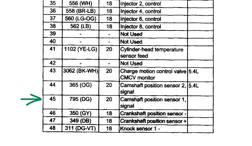 There won't be voltage there, the sensor generates the voltage itself. If you have no continuity on the dark green from pin 2 on the sensor connector to pin 45 on the ECM, that is the issue. An easy way to be sure is to check pin one in the connector to ground. Then jump pins one and two in the connector and now go to pin 45 and check if it is grounded in that connector. No ground, it's an open wire. It's going to be a pain, but you can open the loom and trace the wire, or much simpler. Get a section of new wire and replace the bad one. To see if the issue would let you simply splice into the wire, take your meter and a pin, go about 6 inches from the connector on one end and push the pin into the wire center. Now test, if you have continuity, cut the wire where the pin is and strip it back a bit. Now go to the ECM end and do the same. Now you can add in the new wire between those pieces.