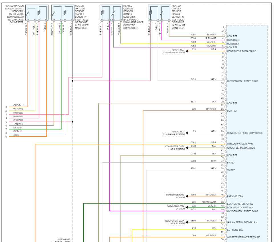 I just need a wiring diagram of the wiring harness that goes to the oxygen sensor and what color goes to what color on the sensor itself.