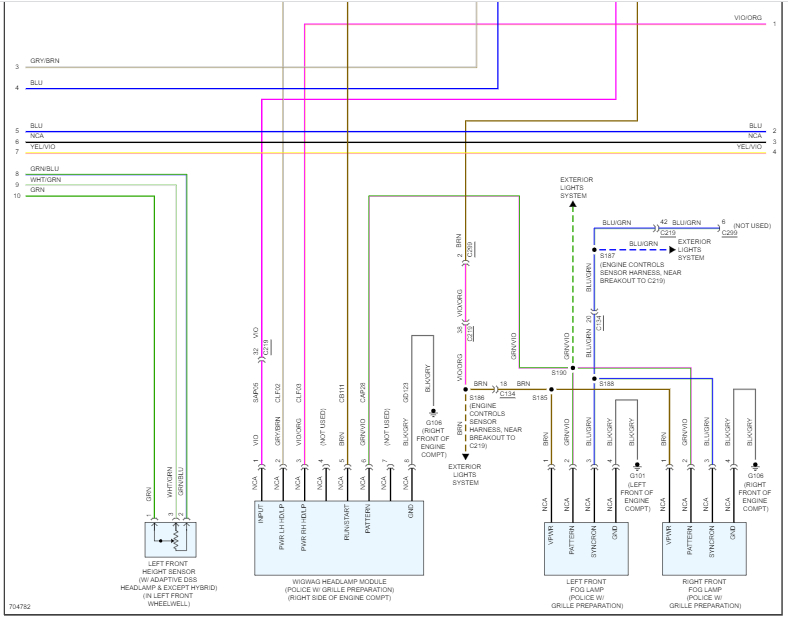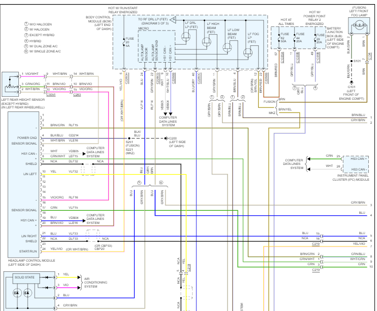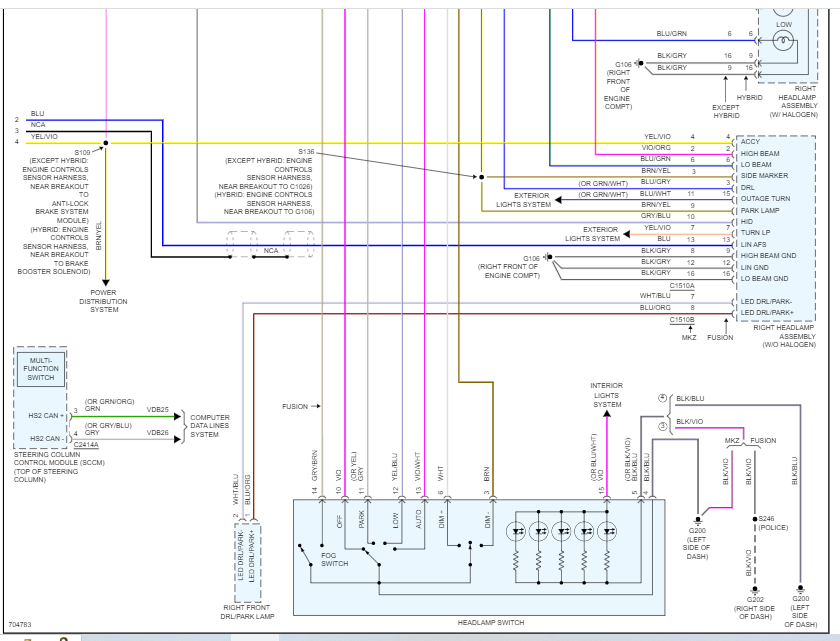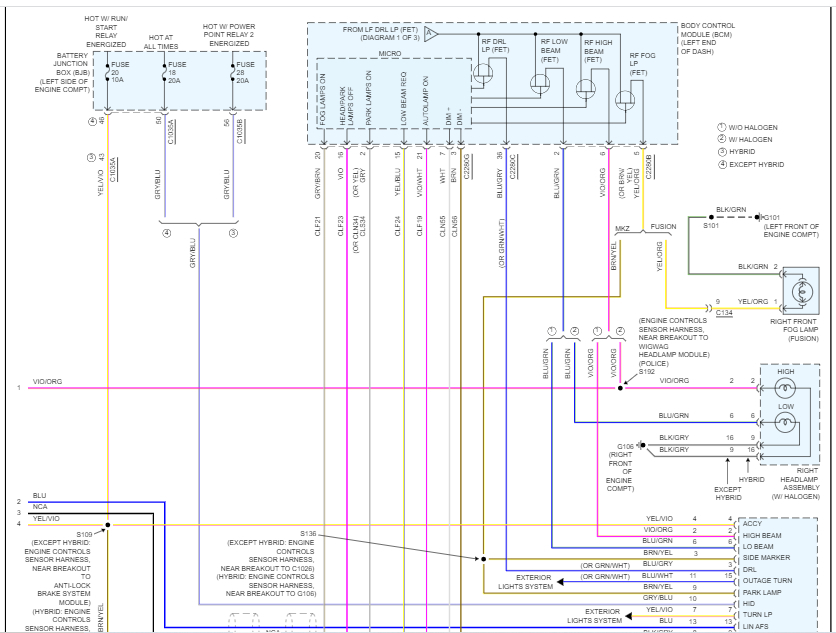 If you look below, I attached the entire headlamp wiring schematic. Take a look through them and let me know if this helps or if you have other questions.