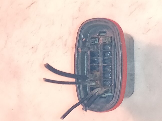 The wires are blue/gray for the turn signal and blue/green for park and side marker. This is the way I just put it together and everything works except the turn signal. But when I turn off the lights the turn and side marker both blink. I turn the lights on everything works except for the turn signal. I'm going to try and wire up the turn signal to the next wire in line. I mean it has to be one of the two or three wires. I'm guessing one of them will work right. I'm just buying time doing this until I buy a whole new headlight assembly for the darn thing.