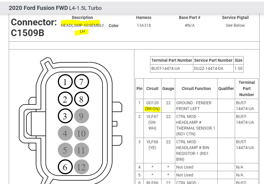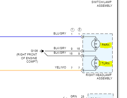 If you look below, I attached the pinout of the left headlamp assembly. Take a look and let me know if that helps at all.