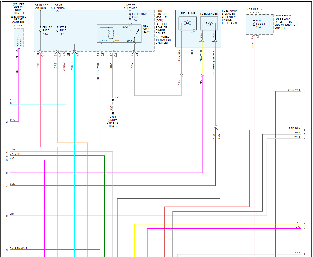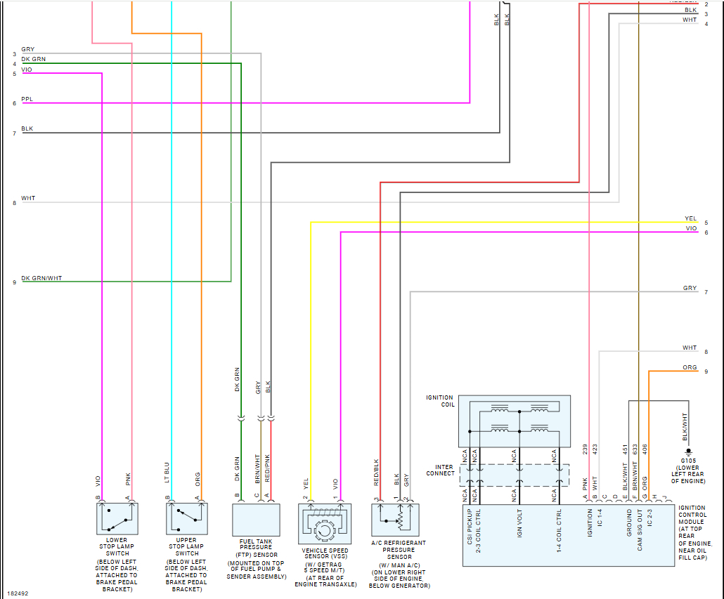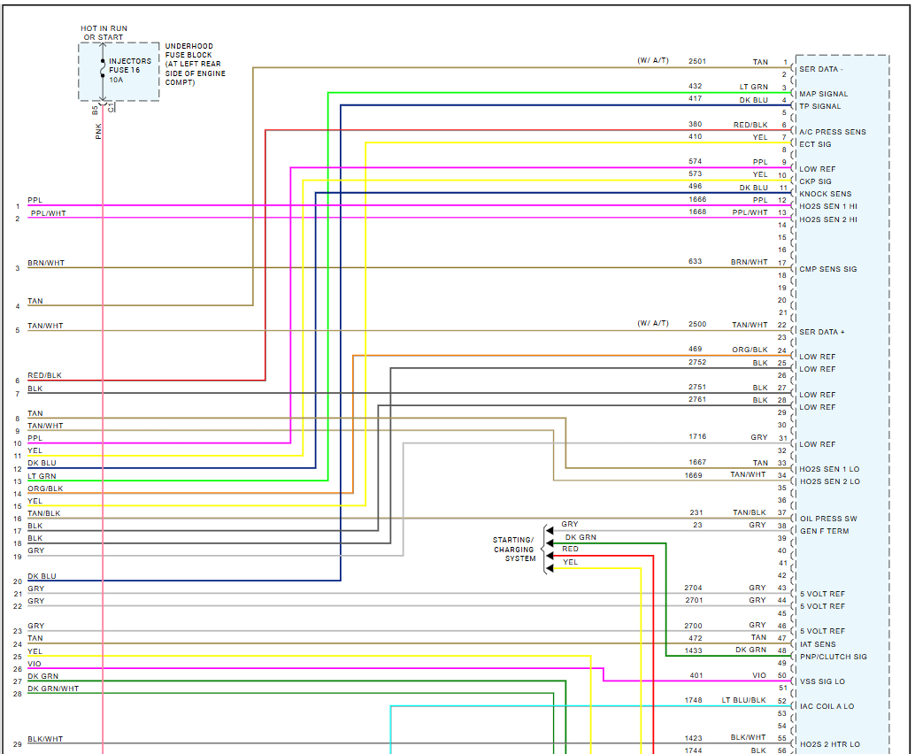 I would start by checking the crankshaft position sensor. When they go out the spark will stop. Also check the fuses. Here is the wiring diagrams for the PCM and engine and I will email them to you as well. Check out the images (below). Let us know if you need anything else.