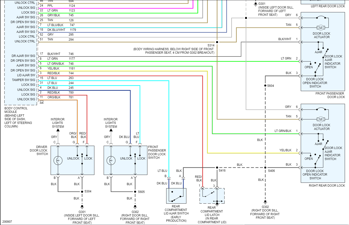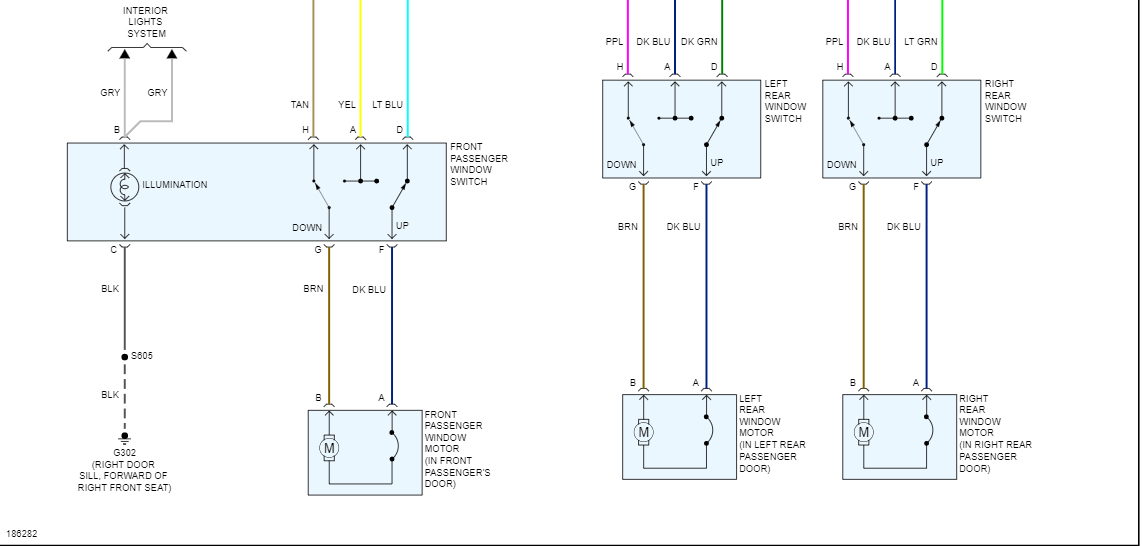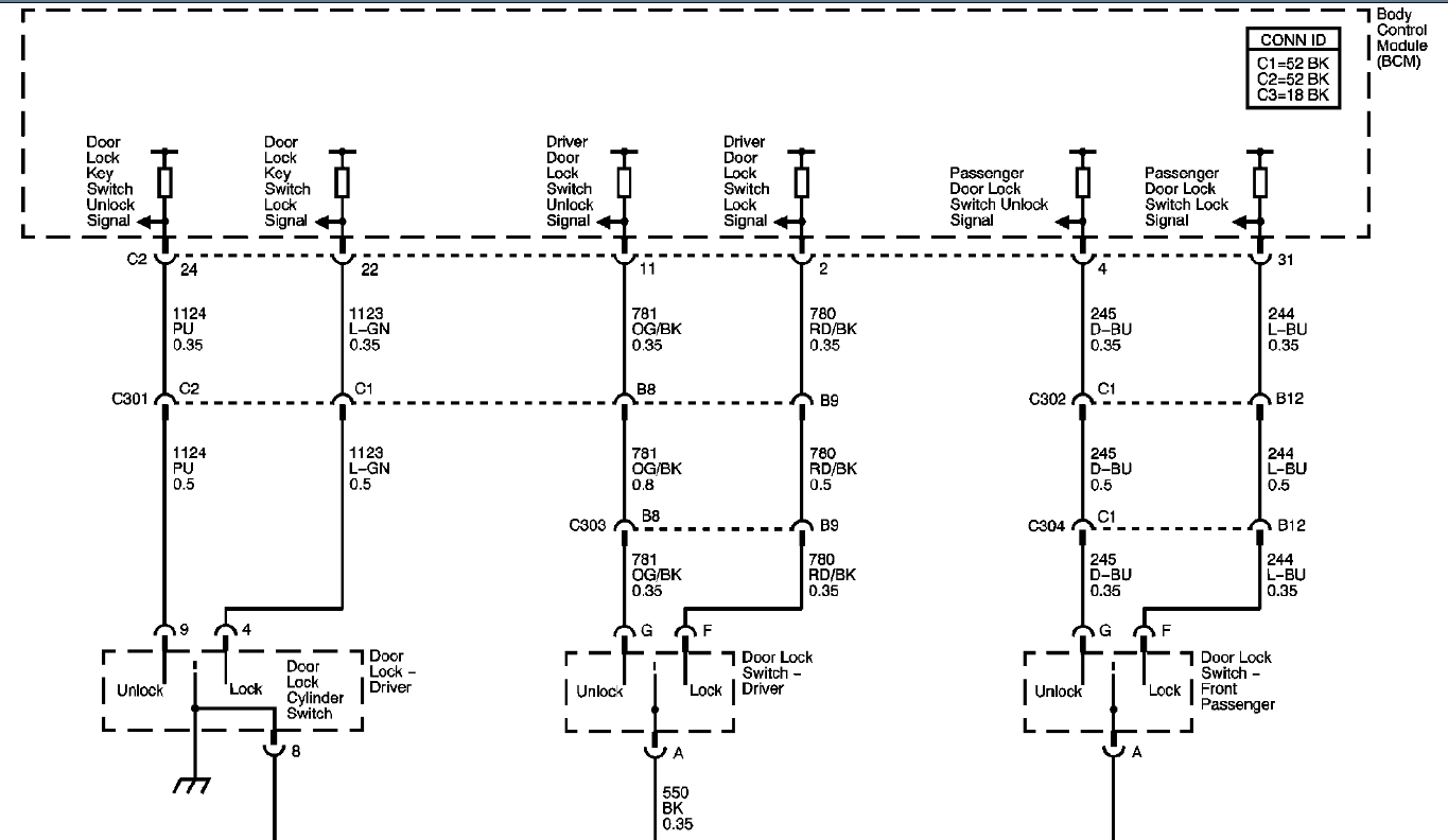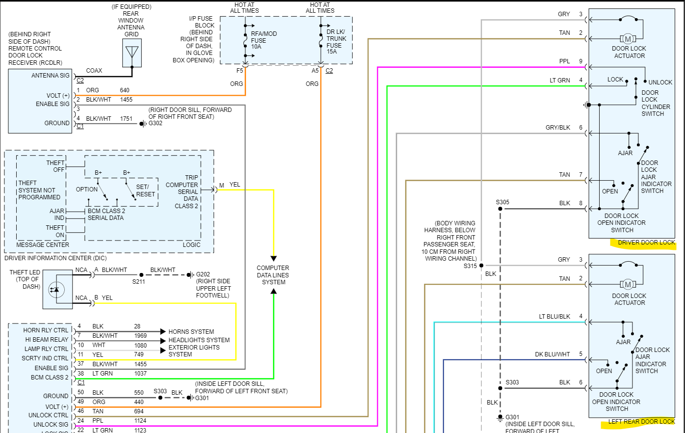 problem: door locks won't work (rear one does not move at all while front lock seems to slightly respond to power switch but does not lock or unlock (just slight movement in the door's knob is observed).