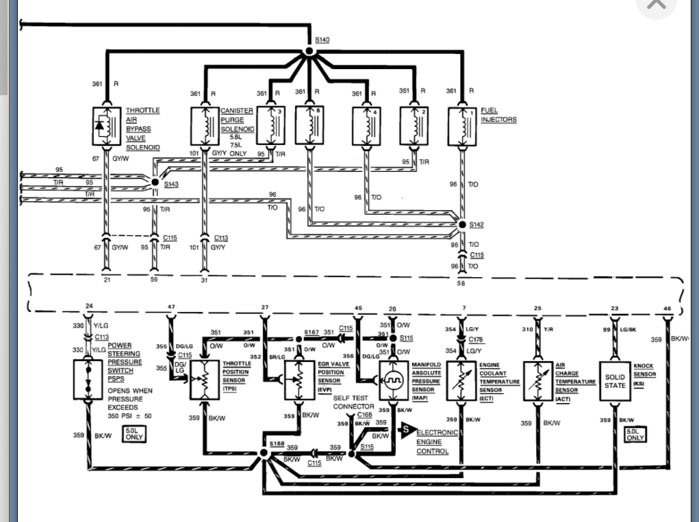 Do you have any nice pictures with engine wiring harness schematic? I mean everything with coil, injectors, all sensors etc. It is a 1989 302 5.0 efi unit.