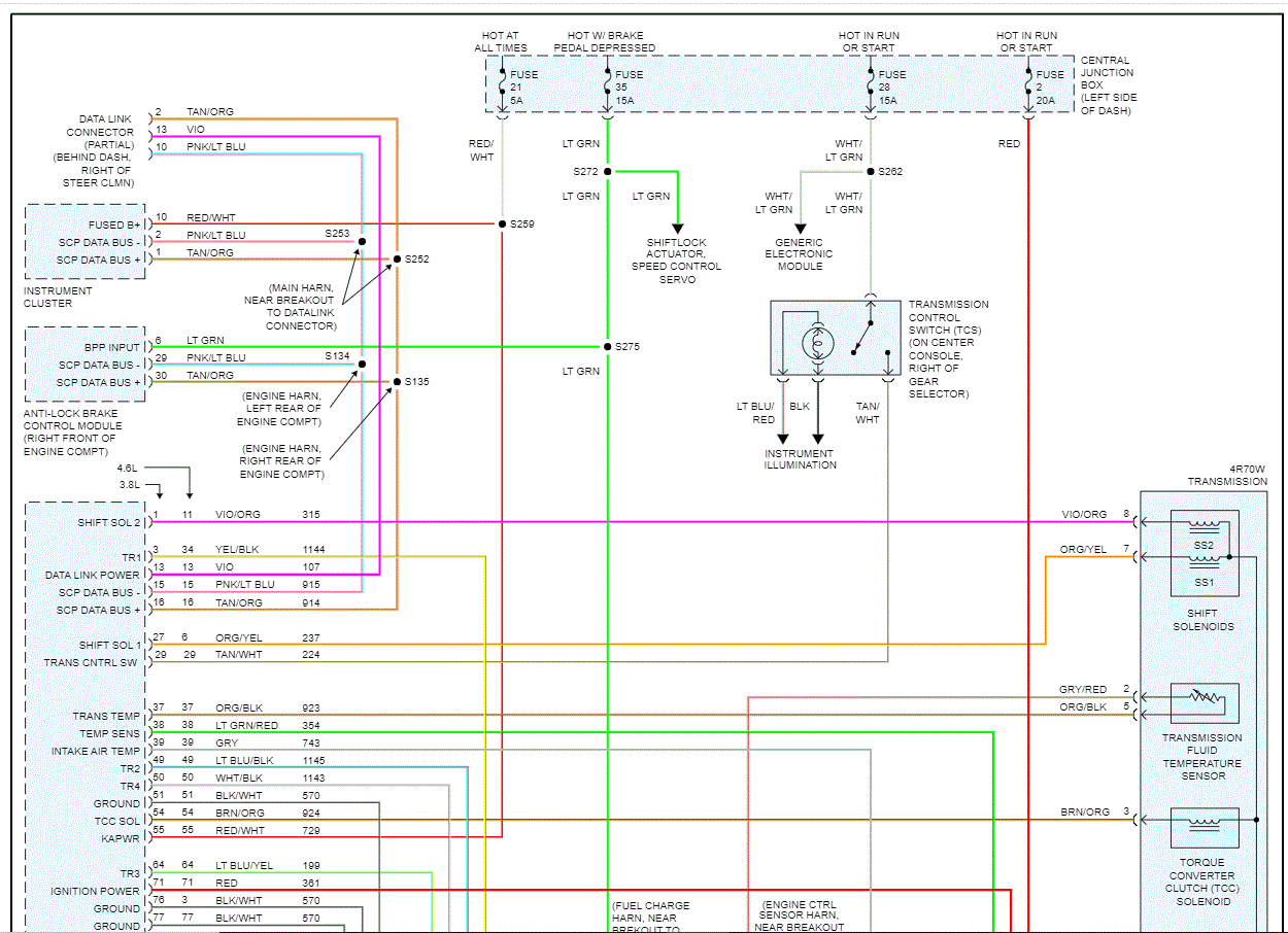I attached the wiring schematic related to the transmission circuits. Take a look through them and let me know if that is what you needed. If it is something different, let me know and I'll try to get what you need.