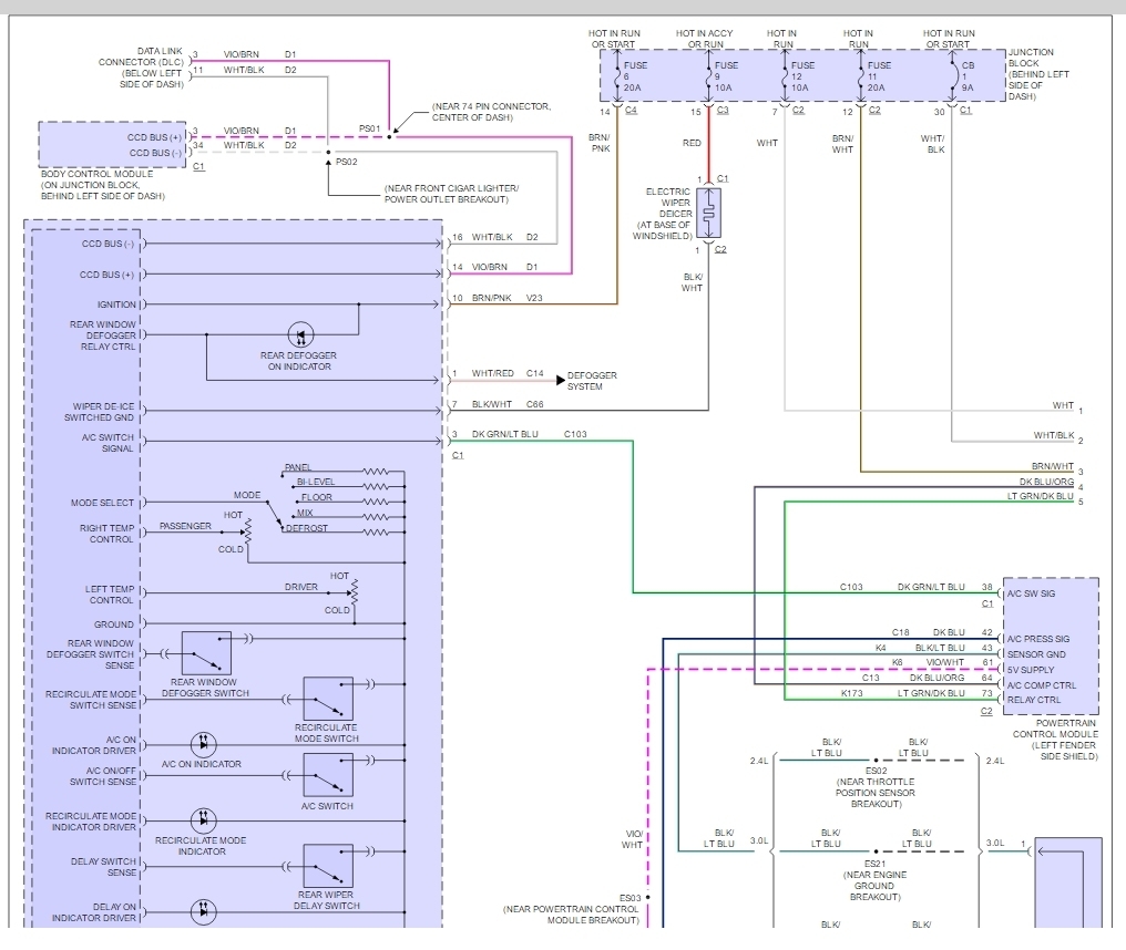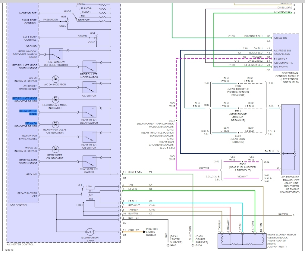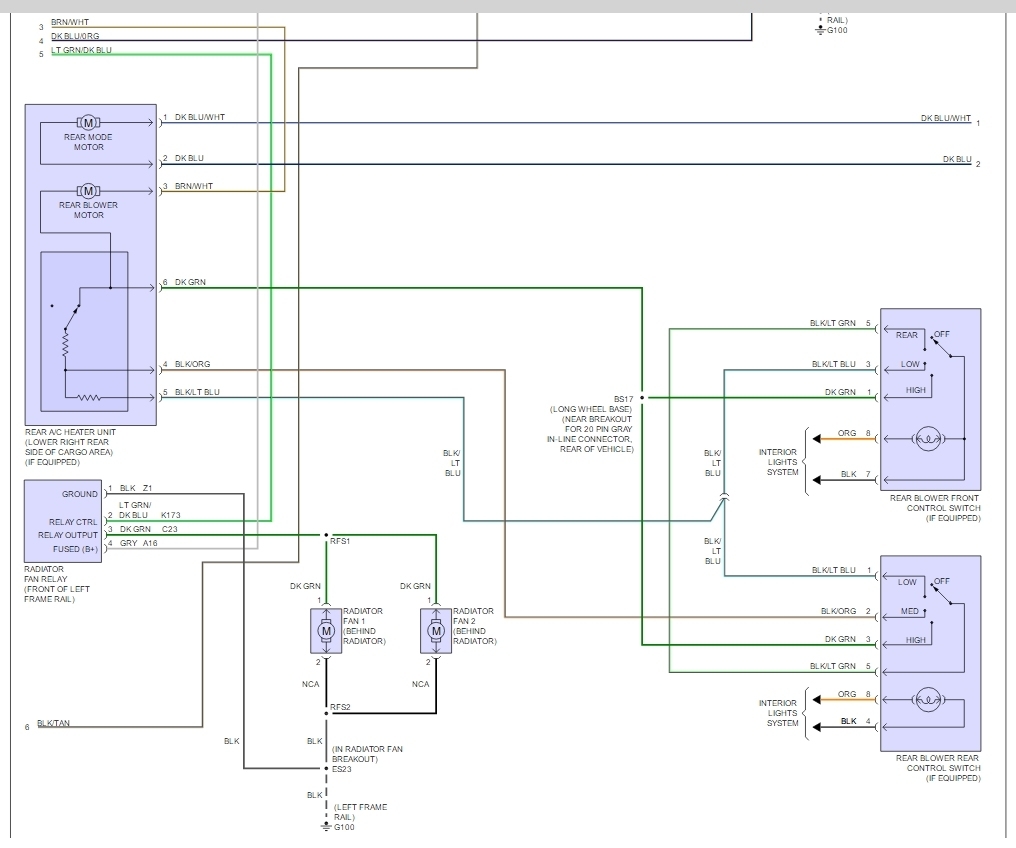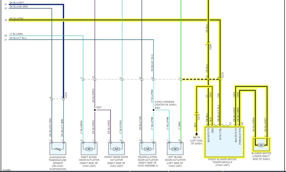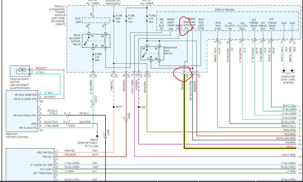 I attached the wiring diagram for you to view. The front blower module is powered by the dark blue wire from the TIPM. You need to verify power is to the module from the module.