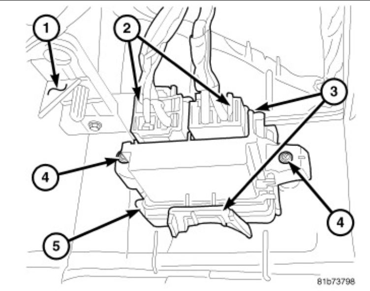 Depress the four mounting clips to disengage and remove the TIPM housing from its mounting bracket.