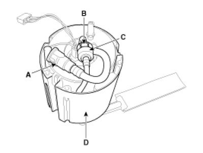 6. Disconnector the vapor tube quick-connector (A) at the fuel pump, and then remove the fuel pump from the fuel tank.