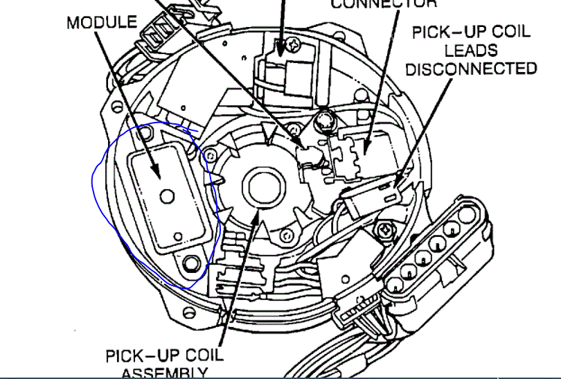 NOTE: Be sure there is a sufficient amount of silicone grease on the metal face of the module and on the distributor base (where the module seats), when reinstalling the module. The purpose of the silicone grease is to cool the module.