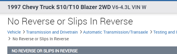 Here is what I attached below. First, pics 1 and 2 are diagnostics for a slip in reverse or no reverse condition. Explains different possibilities.