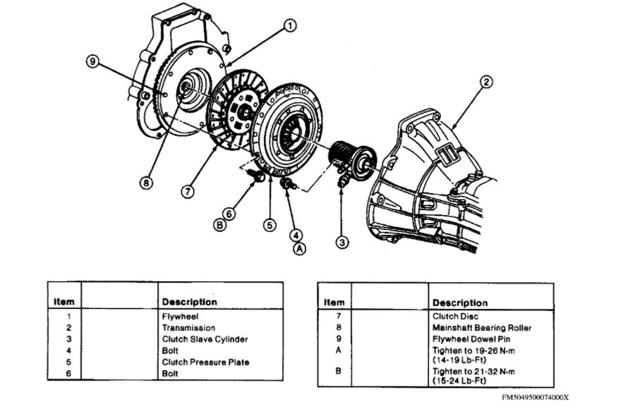 a. Before tightening pressure plate bolts, insert clutch alignment tool No. T74P-7137-k or equivalent into clutch pilot bearing hole. Ensure clutch disc is properly aligned on flywheel.