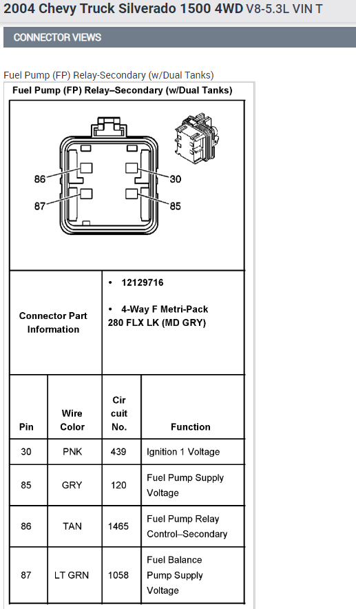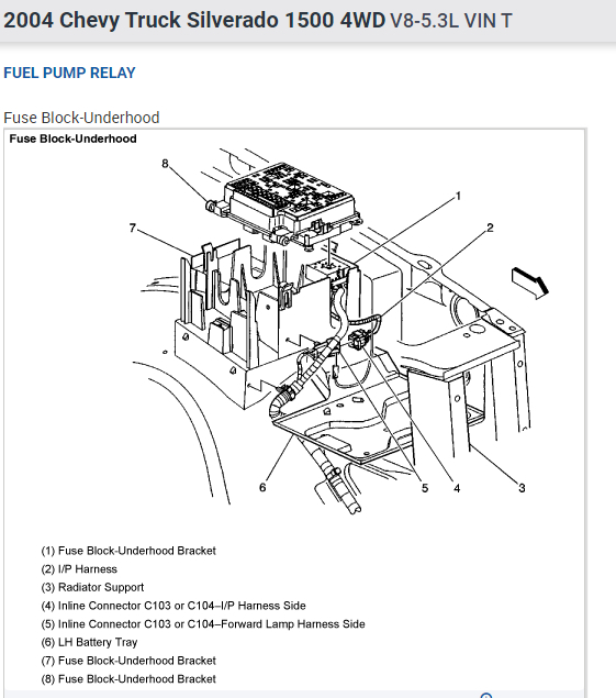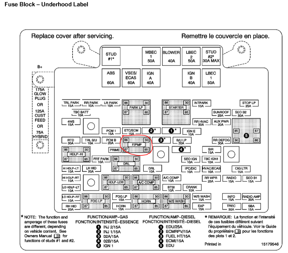 The fuel pump relay is in the fuse box under the hood (see diagram below).