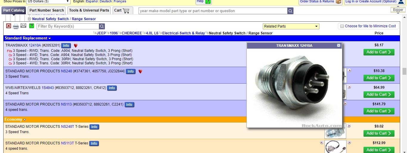 It is on the side of the transmission. It has a three wire connector on it and it just unscrews. Picture attached of the switch.