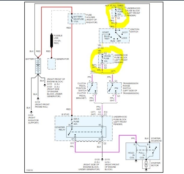 Yes, the starter won't crank, all fuses are good, no broken wires that I can find. Don't have any power coming to the starter on the ignition wire.