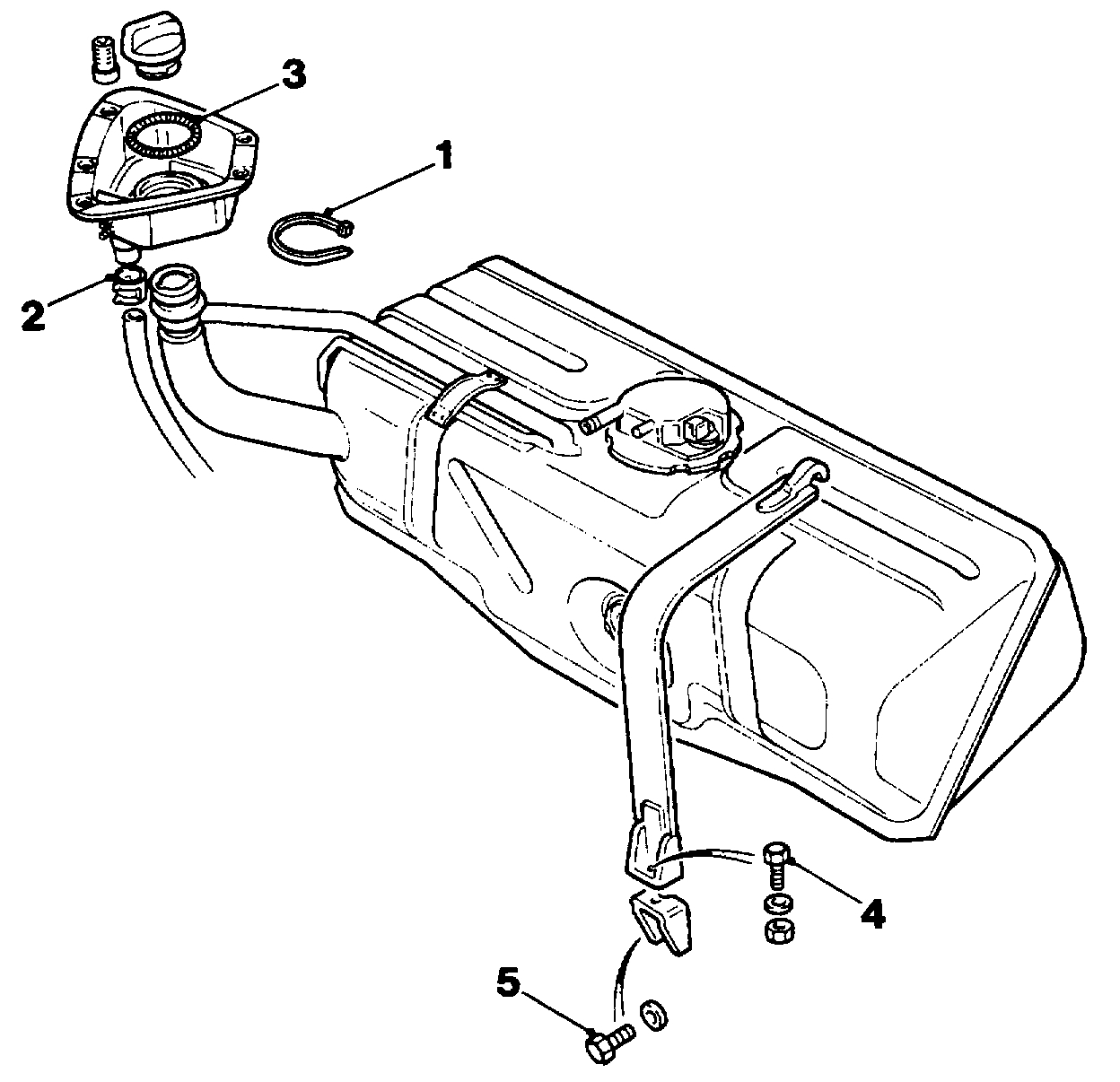 - Remove the ratchet strap (1), and the spring band clip (2), to release the filler aperture drain pipe from the fuel tank filler tube and the aperture.