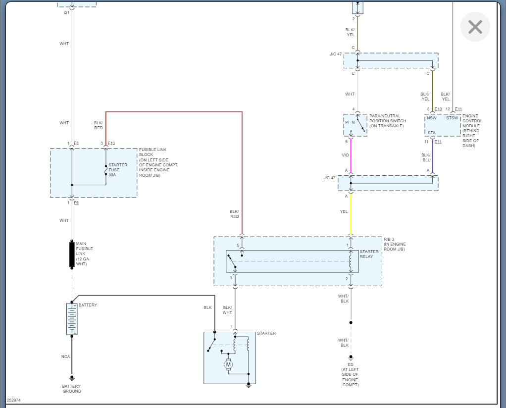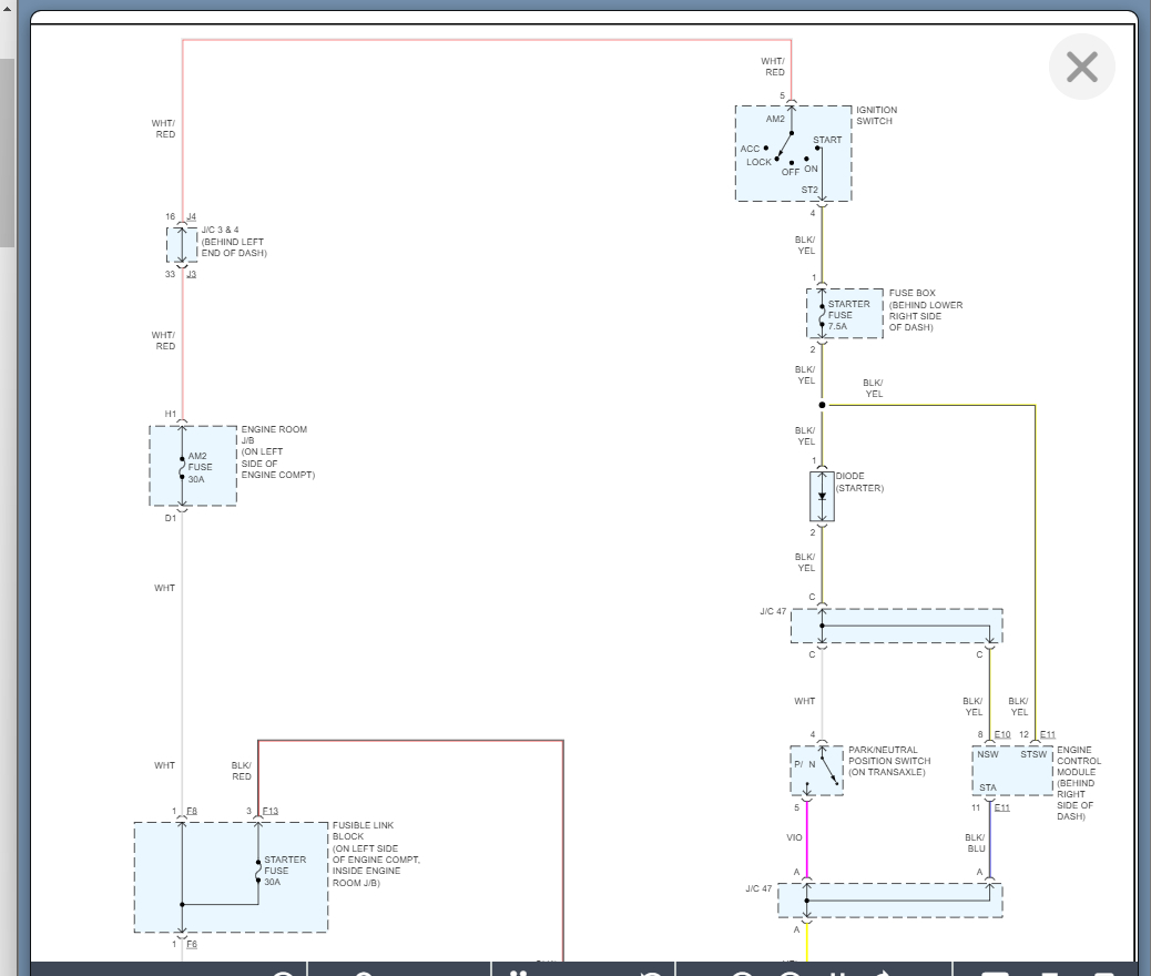 However, I am attaching the wiring diagram below. We need to find out if you are getting voltage at the starter when you are cranking the engine.
