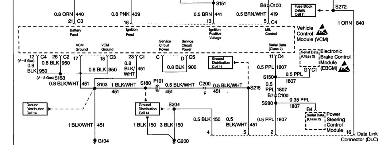 ENG-1 feeds the EGR, purge valve, cam sensor, O2 sensors, MAF as well as a feed to the ECM.