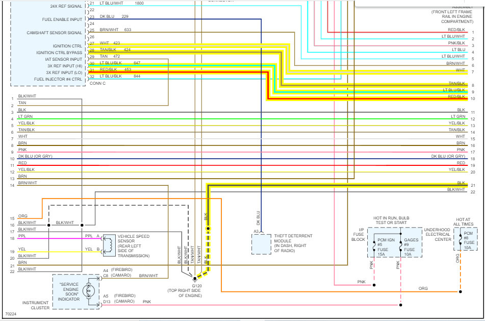 See pics below. Note: the schematic was two pages, but I had to cut each one in half to make them readable for you. I did overlap them so you can follow from one to the next.