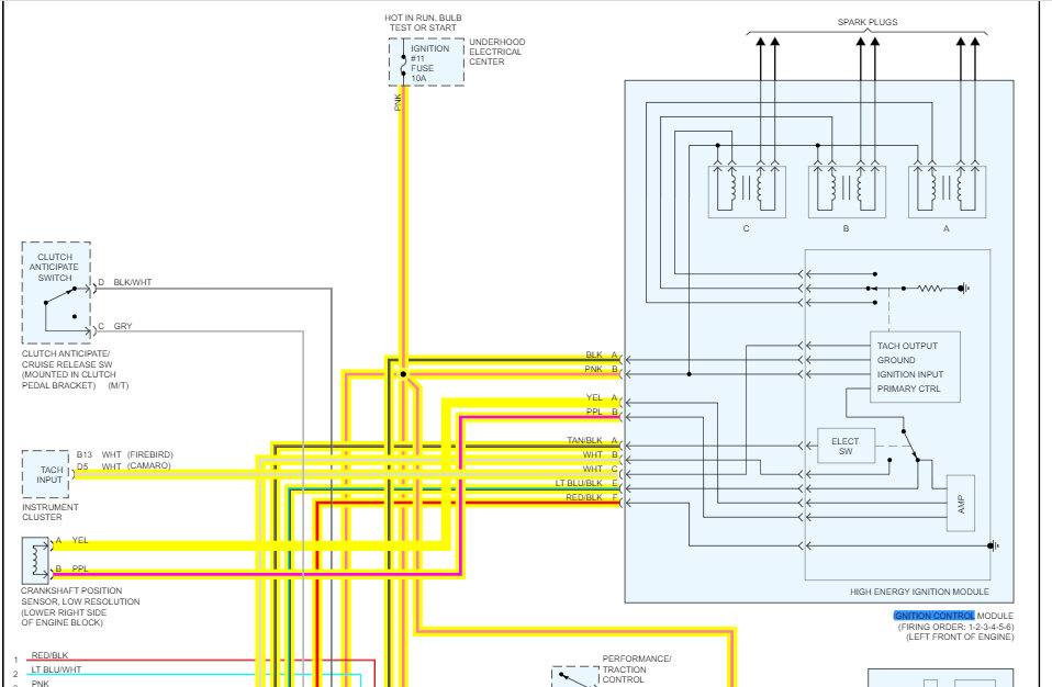 If you look below, I attached the wiring schematic related to the ignition control module. I highlighted all wires related to the module and where they go. Look at the wires you have on the module now and determine which ones are missing based on the schematic.